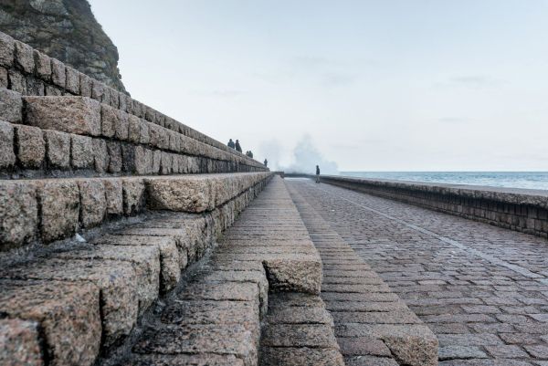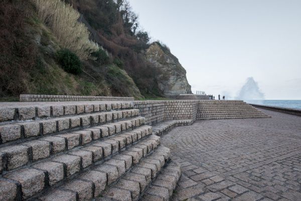 With this work, we want to highlight the importance of Porriño pink granite as a material with excellent technical qualities that proudly withstands the passage of time and inclement weather, such as in this case the rough waves and wind of the Cantabrian Sea.