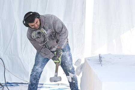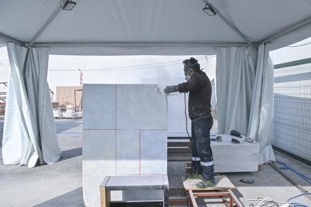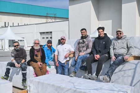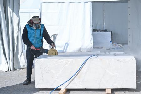 Curated by sculptor Ekin Erman, the workshop brings together prominent artists from different cities in Türkiye, including Bahadir Hizol, Cagdas Ercelik, Dilsad Akcayoz, Orhan Gazi Keskin, Ozkan Arslan and Tonguc Sercan, who continue their works on marble blocks throughout the production period.