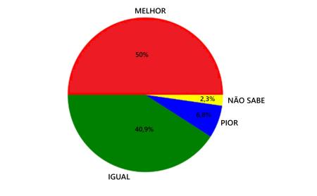 Muito poucos inquiridos têm uma perspetiva negativa (6,8% pior e 2,3% não sabe).