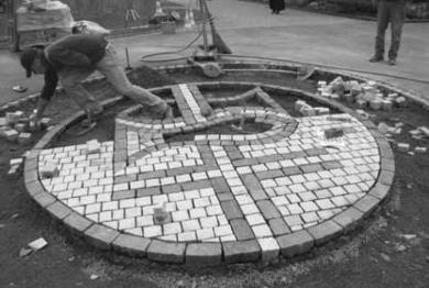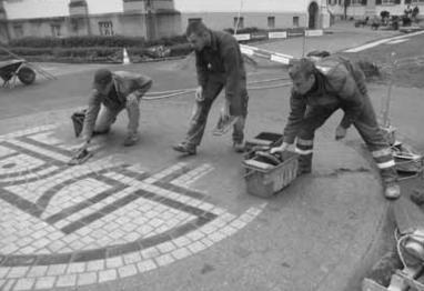 Immer häufiger sind Intarsien wie Wappen oder andere Verzierungen in unterschiedlich farbigen Natursteinen. Diese sind in der Ausführung natürlich oft besonders anspruchsvoll und eine spezielle Herausforderung für den Pflästerer. Die traditionellen Pflästerungsarten – Reihenpflästerung, Bogenpflästerung, Kreispflästerung, Schuppenpflästerung, Diagonalpflästerung und andere – sind weiterhin sehr beliebt. Generell kann man hier keine eindeutigen Trends beobachten. Als Pflästerer schaut man sich immer erst die Situation genau an und empfiehlt dem Bauherrn dann die dazu geeignete Pflästerung. Letztlich ist es aber natürlich immer der Kunde, der entscheidet.