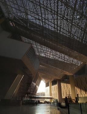 The building design was by architects Róisín Heneghan and Shi-Fu Peng, and their company Heneghan Peng Architects of Ireland. Heneghan Peng, Buro Happold, Arup and ACE Consulting Engineers (Moharram and Bakhoum) collaborated on the design of the building. The landscape and site master plan was designed by West 8, the exhibition masterplan, exhibition design, and museology were led by Atelier Brückner.