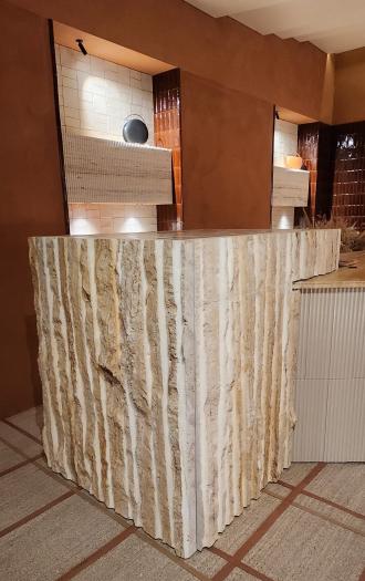 En algunos de estos espacios la piedra es la principal protagonista. Cada vez son más las empresas de piedra que participan en este tipo de eventos, una prueba de que parte del sector está apostando por dirigirse a los especificadores o clientes finales.